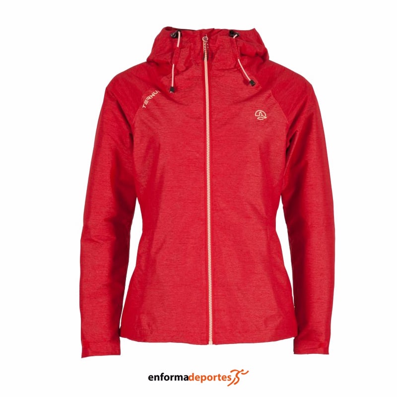 Chaqueta de mujer, dos capas, con efecto vigoré, confeccionada en tejido cortavientos, resistente al algua, con capucha y bajos ajustables mediante tancas, con bolsillos laterales con cremallera.