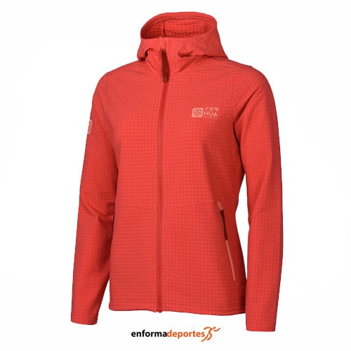 Chaqueta mujer TERNUA REIDVILLE, confeccionada en tejido Stormfleece Pro, con alta resistencia al viento y alta resistencia al agua, tejido reciclado, pass rain test (AATCC 35), muy transpirable Air permeability is 10,4 (ASTM D737), con acabado repelente al agua DWR libre de PFC, con patrón articulado para una mayor libertad de movimientos, capucha rematada con vivo elástico, con dos bolsillos con cremallera para las manos.