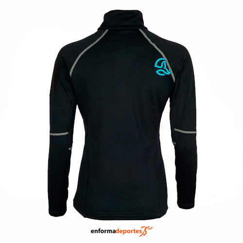 Chaqueta de mujer, TERNUA SUNSET PEAK, versátil, ideal para actividades de montaña, elástica y resistente chaqueta de secado rápido está fabricada con tejido Warmshell Eco. Chaqueta para un aislamiento leve o bajo una tercera prenda, como capa intermedia. con costuras planas, tres bolsillos, uno de ellos en la manga, hueco en la manga para el dedo pulgar y bajo ajustable mediante cordón para evitar la pérdida de calor.