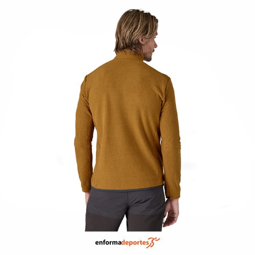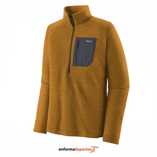 Polar hombre PATAGONIA R1 AIR ZIP NECK, confeccionado en tejido polar técnico, ligero y transpirable, con vellón jacquard de poliéster 100 % reciclado con hilos de núcleo hueco presenta una textura en zigzag única que absorbe la humedad, se seca rápido y es altamente transpirable para actividades de alto rendimiento, con costuras de hombros desplazadas, con bolsillo interior en el pecho izquierdo para guardar fácilmente artículos pequeños; con puños y dobladillo con tejido elástico para mayor ajuste, con media cremallera para mayor ventilación.