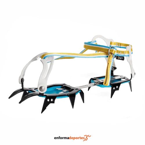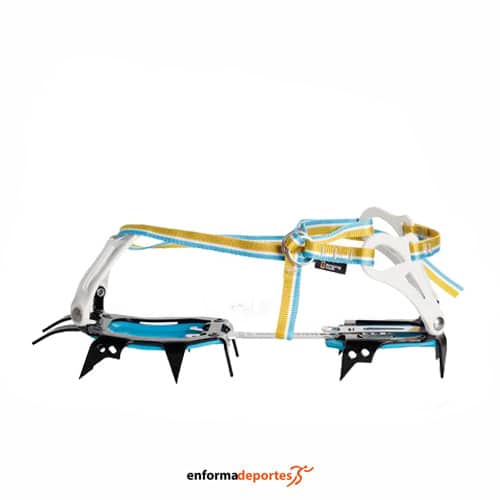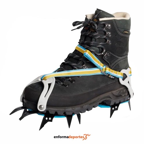 Crampones FAKIR III CLASSIC RING, son más ligeros, más resistentes y con un aspecto renovado, con correas, tienen 12 puntas y son ideales para montañismo clásico. Están diseñados especialmente para travesías por glaciares y pendientes nevadas, pesan 810 gramos el par y son compatibles con botas de trekking blandas sin ranura en el talón. Homologados bajo la norma EN 893. Aptos para tallas 37-47. Placas antizuecos incluidas, la forma simétrica del crampón se adapta perfectamente a la bota y a las puntas frontales, proporcionando la máxima eficiencia en terrenos empinados. El ajuste de la talla se ha simplificado y puede realizarse sin necesidad de usar herramientas.