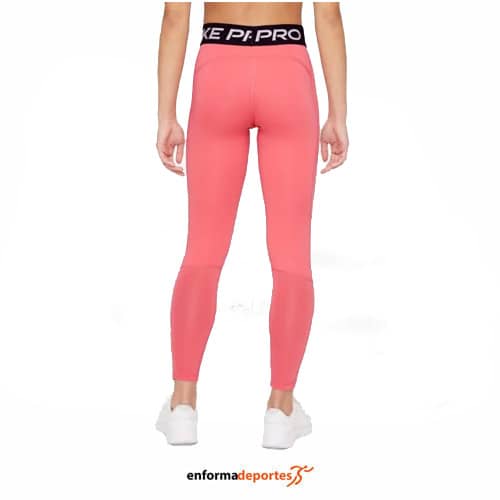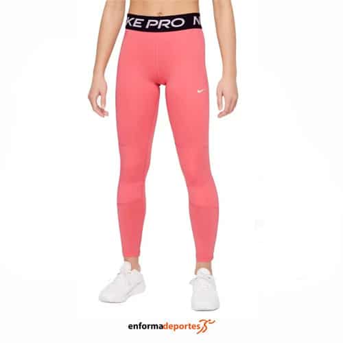 Malla mujer NIKE PRO LEGGINS confeccionadas con tecnología Nike Dri-FIT que capilariza el sudor de la piel para mantener la transpirabilidad y la comodidad, tejido suave y elástico, con cintura elástica y de ajuste ceñido, se adapta al cuerpo.