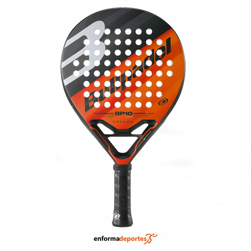 Pala BULLPADEL BP10 EVO 23, con diseño en forma redonda con un balance bajo, ideal para movimientos rápidos y una gran manejabilidad en la pista, con tecnología STReinforce, que mediante la creación de un pequeño canal en la parte lateral del marco de la pala, se consigue una disminución del peso, un mayor control y un aumento de la rigidez estructural, en el interior de la pala podemos encontrar la goma Soft EVA, de densidad media que aumenta la capacidad de reacción proporcionando una mayor estabilidad, con el marco CarbonTube compuesto de fibra de carbono 100%, lo que favorece una mayor durabilidad de la pala.