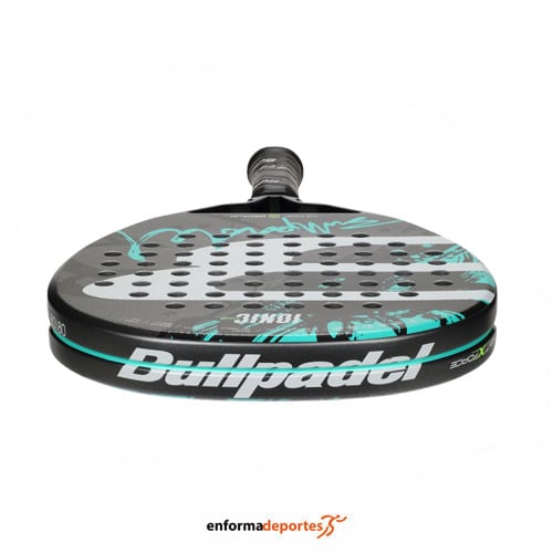 Pala BULLPADEL IONIC LIGHT 24, destaca por su manejabilidad y su eficacia, con forma de lágrima con balance medio y cuenta con el nuevo sistema XForce. Su núcleo externo está acabado con Glaphite, un trenzado especial desarrollado por Bullpadel que mezcla fibras elásticas de vidrio con otras de carbono para lograr un tacto confortable, pero a la vez lo suficientemente reactivo para quien persigue el juego veloz. El núcleo interno está compuesto de Multieva, y su marco CarbonTube de carbono 100%. Incorpora la superficie rugosa 3D Grain con forma poligonal, que favorece el agarre en el momento del contacto de la bola con la pala, consiguiendo así un mayor efecto de la bola.