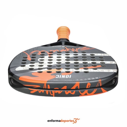 Pala BULLPADEL IONIC POWER, es una pala muy manejable y eficaz en pista. Es una pala de pádel para jugadores de nivel Medio/Avanzado, con perfil de 38mm, balance alto, con forma de diamante, núcleo exterior de Graphite, núcleo interior multieva, con potencia/control: 90/80.