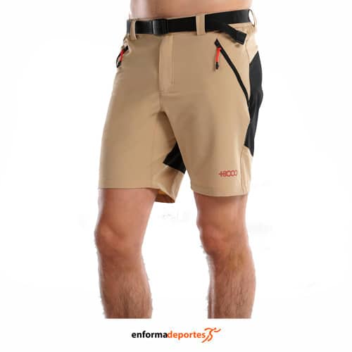 Pantalón corto hombre +8000 GRAND, de corte slim, confeccionado en tejido resistente al desgarro en la parte posterior, con cinturilla elástica con cinturón y bolsillos con cremallera.