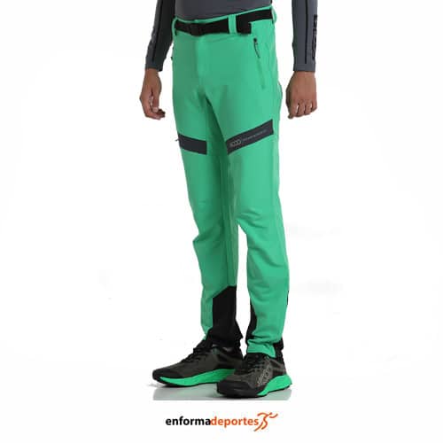 Pantalón hombre +8000 CICERO, de corte ajustado, confeccionado en tejido exterior bi-elástico con perchado interior y transpirable y repelente al agua, con bolsillos laterales con cremallera, con cintura elástica con cinturón, rodillas preformadas y piezas en material antiabrasión y bajos con cremallera.