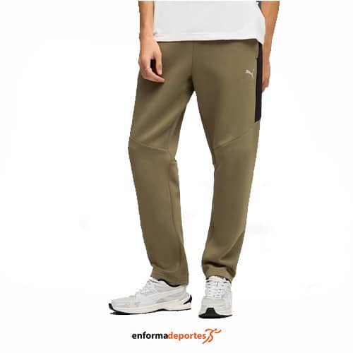 Pantalón hombre PUMA EVOSTRIPE, de corte y ajuste regular, confeccionado en tejido algodón de punto doble, con cintura elástica con cordón ajustable y bolsillos laterales con cremallera.