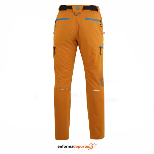 Pantaón hombre SPHERE BORDER, confeccionado en tejido nylon y elastano, con tratamiento DWR repelente al agua, de secado rápido, transpirable y bi-elástico, de corte técnico, cintura semi-elástica, con cierre de botón corchete y cinturón elástico ajustable, seis bolsillos (delanteros sin cremalleras, los otros con cremalleras invertidas a contraste), goma ajustable en los bajos, tejido especial en las rodillas, bolsillos y entrepierna, logo bordado. Doble tejido en las rodillas con espacio para poner protecciones.