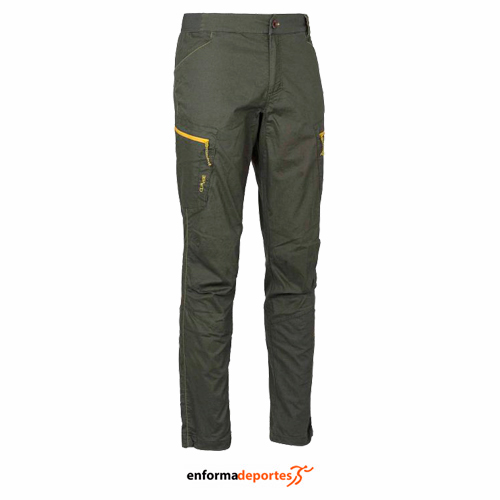 Pantalón hombre TERNUA TOP OUT , versátiles, resultan idóneos para practicar escalada boulder, confeccionados con una mezcla única de cáñamo transpirable extremadamente terso, de algodón orgánico muy suave al tacto, y de elastano, que proporciona libertad de movimiento, con cintura de tela elástica para un ajuste cómodo y ajustable gracias al cordón en la cintura y sus bajos, con dos bolsillos frontales y dos laterales con cremallera y dos bolsillos traseros; además de otro para el cepillo de dientes.