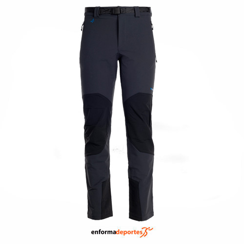 Pantalón hombre TRANGOWORDL MOURELLE DR, de corte ajustado, confeccionado en tejido bi-elástico que maximiza comodidad y libertad de movimientos, con tratamiento con protección UPF +30 repelente al agua sin PFC, con cintura elástica con cinturón, con ventilaciones con cremallera en las piernas, con rodillas preformadas, con refuerzo interior en el tobillo, con ajustador elástico en el dobladillo con cordón y tope y con bolsillos laterales y traseros con cremallera visible.