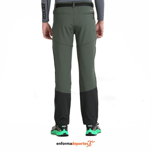 Pantalón hombre +8000 TRUENO, confeccionado en tejido Softshell con acabado polar interior con tratamiento exterior repelente al agua, elástico y transpirable, de corte standard, con tejido de refuerzo en el bajo, cintura elástica con cinturón y bolsillos laterales y trasero con cremallera.
