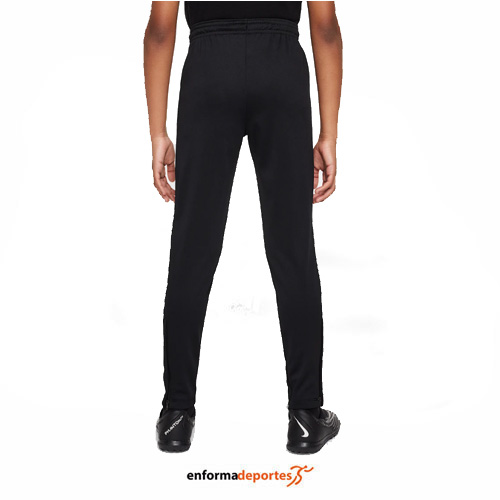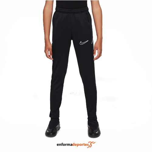 Pantalón junior NIKE ACADEMY DRI-FIT, confeccionado en tejido poliéster con tecnología Nike Dri-FIT aleja el sudor de la piel para mantener la transpirabilidad y la comodidad, con cremalleras en la parte inferior de las perneras para cambiarte sin quitarte las zapatillas o las botas, cintura elástica con cordón para conseguir el ajuste perfecto y bolsillos laterales con cremallera para guardar cosas pequeñas de manera segura.