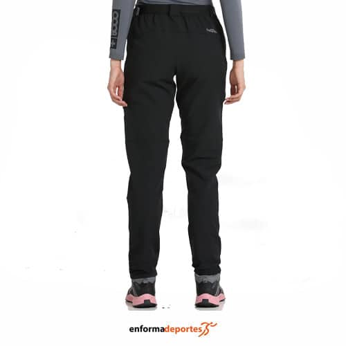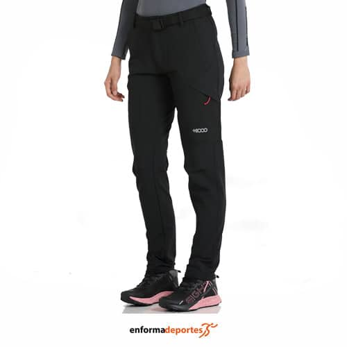 Pantalón mujer +8000 JAYANA, de corte estandard, confeccionado en tejido bi-elástico de doble cara, con tejido repelente al agua y transpirable, con bolsillos laterales con cremalleras, rodillas preformadas, cintura elástica con cinturón.