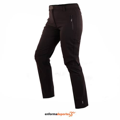 Pantalón mujer SPHERE PEREGRIN, confeccionado con tejido tratado DWR repelente al agua, de secado rápido, transpirable y bi-elástico, de corte técnico, cintura semi elástica con cierre de botón corchete y cinturón elástico ajustable, dos bolsillos con cremalleras invertidas, pinzas en las rodillas, un bolsillo en el lateral y otro detrás con cremallera invertida a contraste, goma ajustable en los bajos, logo reflectante.