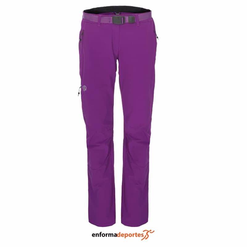 Pantalón técnico de mujer, para actividades como travesía, senderismo y trekking está fabricado con Shellstretch bielástico, para una mayor libertad de movimientos, resistencia al roce y alta transpirabilidad, con acabado de repelencia al agua DWR libre de PFCs, confeccionado con rodillas articuladas, cinturón, tres bolsillos con cremallera y bajos ajustables con tanca.