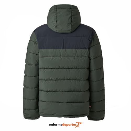 Plumas hombre TERNUA BALENA, confeccionada con tejido con aislamiento PrimaLoft Silver Insulation Loose Fill Rise de 330 g. Ligera, cortaviento, transpirable y muy compactable, confeccionada en Microshell 30D reciclado con forro interior reciclado; cuenta con capucha y bajos ajustables, bolsillos de manos y acabado DWR libre de PFC.
