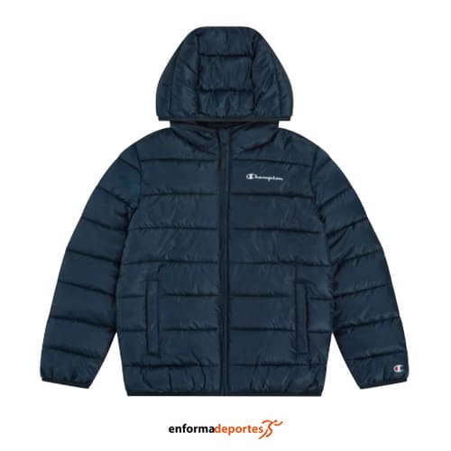Plumas junior CHAMPION HOODED, con capucha integrada con cuello elevado con acolchado sintético, con cierre frontal con cremallera completa y bolsillos laterales para objetos, con puños elásticos.