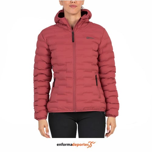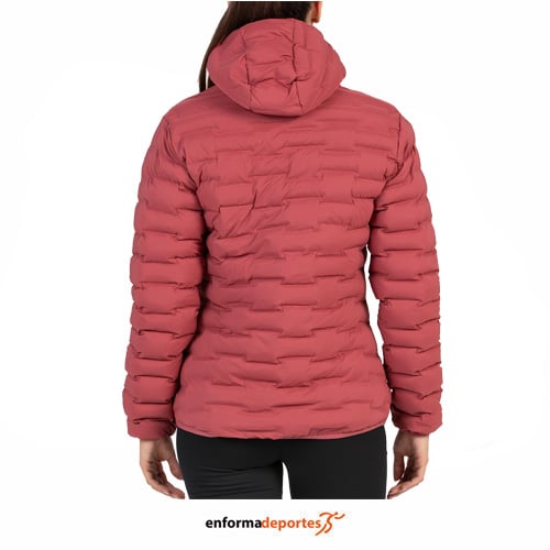 Plumas mujer +8000 SANDEI, confeccionada con un tejido 3D bi-elástico de alta prestación, sin costuras, crea cámaras que albergan el aislante, proporcionando un ajuste cómodo y libertad total de movimiento, con acabado DWR libre de PFC refuerza la repelencia al agua, con relleno Sorona Aura de DUPONT ofrece un aislamiento térmico superior, ligereza y resistencia al agua, con cremalleras en los bolsillos laterales y un tercer bolsillo en el pecho con cremallera invisible, además de bajo ajustable con tankas y capucha y puños rematados con vivos elásticos.