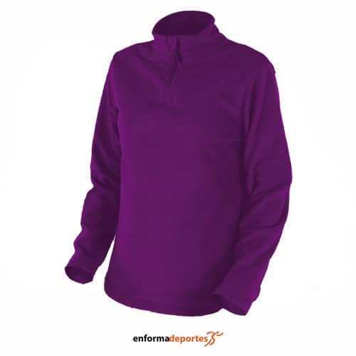 Polar de mujer SPHERE PRO ABODI, confeccionada en tejido micropolar 100% poliéster, cómodo, confortable, de tacto agradable y transpirable, con cuello abierto con cremallera invertida, costuras con recubridora a tono y protector de barbilla.