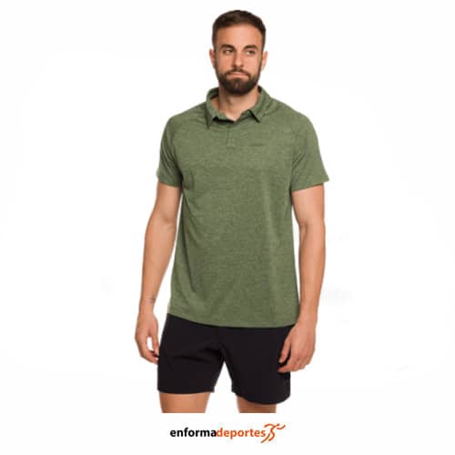 Polo hombre TRANGO GORDON, de corte estándar, confeccionado en tejido con tratamiento antibacteriano y anti-mosquito, de secado rápido, y protección UV +30, con cuello con solapas, manga ranglán y corta.