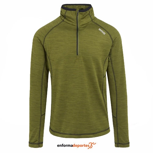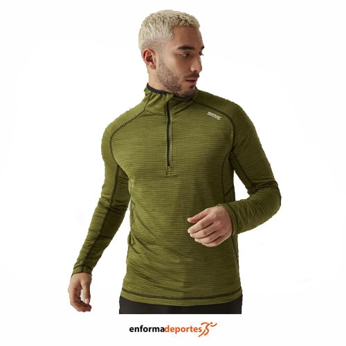 Pullover hombre REGATTA YONDER II, resistente y con una gran capacidad de absorción, tela de forro polar en la espalda proporciona calor y la tela de absorción mueve eficazmente la humedad a la superficie, para que permanezcas fresco, manga larga y con cuello con cremallera. Tejido: 96 % poliéster reciclado, 4 % elastano. Peso: 220 g/m²