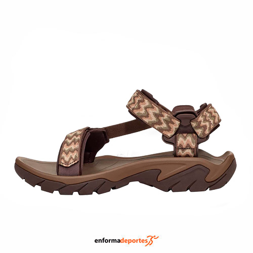 Sandalia hombre TEVA TERRA FI 5 UNIVERSAL, con cinta de secado rápido hecha de plástico reciclado con hilo de poliéster REPREVE® rastreable y verificable de Unifi® que sujeta el pie y resiste el maltrato, forrado con malla ligera, transpirable y 60 % de poliéster reciclado que mantiene los pies frescos y cómodos, con cierre de velcro que se pone y se quita rápidamente y se ajusta perfectamente, entresuela de PU moldeada amortigua y brinda soporte kilómetro tras kilómetro, incluso con un paquete pesado, el vástago de TPU estabiliza y apoya su pie en terrenos irregulares, suela exterior de goma de araña resistente es extremadamente duradera y proporciona una gran tracción, material tratado con Life Naturals, un antimicrobiano que combate el crecimiento de bacterias que causan olores.