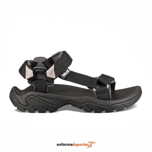 Sandalia mujer TEVA TERRA FI UNIVERSAL, sandalia de secado rápido que ofrece una entresuela con soporte, una suela de goma ultra adherente y un cierre de velcro para que puedas ponértela y quitártela en un instante, con correas de secado rápido hechas de plástico reciclado con hilo de poliéster REPREVE® verificable y trazable de Unifi® sostienen su pie, forrado con malla de poliéster ligera, transpirable y 60% reciclado que mantiene tus pies frescos y cómodos, con cierre fácil de velcro se coloca y se quita rápidamente y consigue un ajuste perfecto, entresuela de PU moldeada amortigua y brinda soporte kilómetro tras kilómetro, incluso con una mochila pesada. La caña de nailon estabiliza y brinda soporte a su pie en terrenos irregulares y suela exterior de goma Rugged Spider es extremadamente duradera y proporciona una gran tracción, con tratamiento Life Natural, un tratamiento antiolor a base de menta.