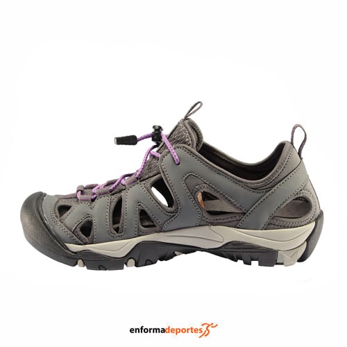 Sandalias mujer +8000 TUDUN, fabricada con mediasuela de phylon con máximo poder de absorción, reduciendo los impactos sobre las articulaciones, con suela con puntera reforzada, para tener los dedos protegidos, mientras que las grietas de flexibilidad de la planta proporcionan mayor estabilidad y eficiencia en la pisada, con plantilla de alta ventilación y con capacidad de evacuación del agua, favorece una práctica deportiva más confortable. La planta cosida al corte y unida directamente a la mediasuela (CALIFORNIA LASTING) proporciona mayor estabilidad y comodidad