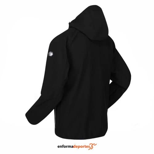Softshell hombre REGATTA AREC III, confeccionada con tejido elástico repelente al agua y resistente al viento, con bolsillos con cremallera y capucha.