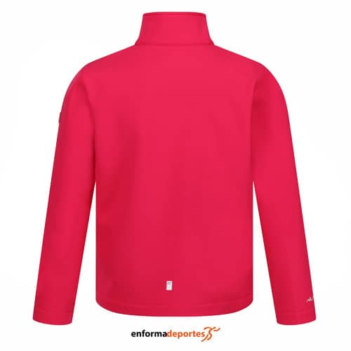 Softshell junior REGATTA CERA, confeccionado en tejido repelente al agua, transpirable y resistente al viento,ofreciendo protección duradera , 270 g/m² Softshell STRETCH cálido reverso tejido reciclado 96 % poliéster/4 % elastano, con 2 bolsillos inferiores y tira reflectante.