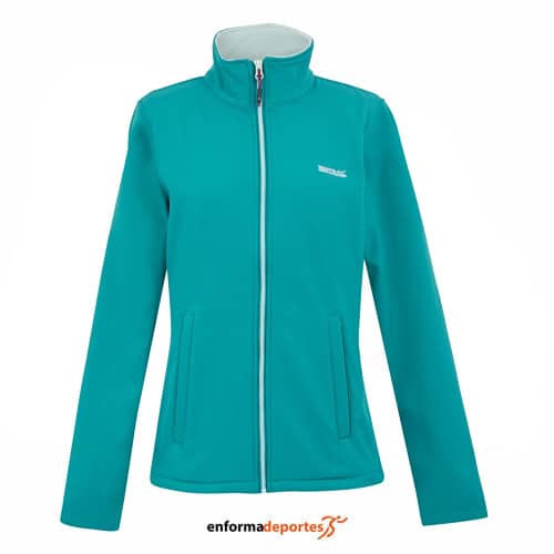 Softshell mujer REGATTA CONNIE V, confeccionado con tejido softshell elástico con respaldo cálido, con acabado repelente al agua, resistente al viento y con 2 bolsillos inferiores con cremallera.