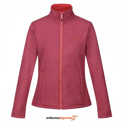 Softshell mujer REGATTA CONNIE V, confeccionado con tejido softshell elástico con respaldo cálido, con acabado repelente al agua, resistente al viento y con 2 bolsillos inferiores con cremallera.