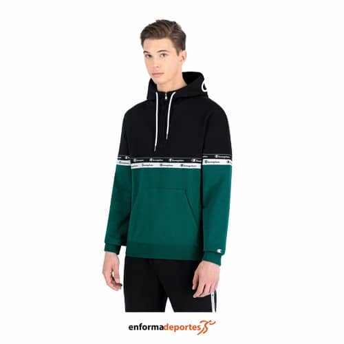 Sudadera hombre CHAMPION HOODED SWEARTSHIRT, manga larga, con capucha con cordón ajustable, bolsillo tipo canguro y puños y dobladillo acanalados.