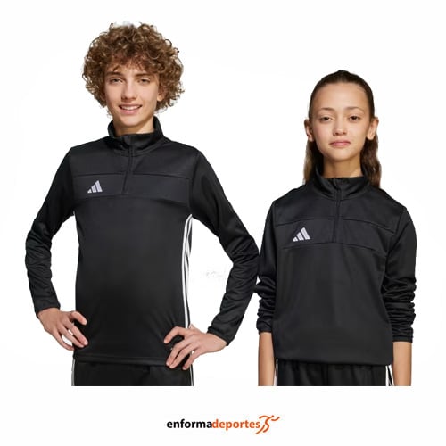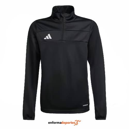 Sudadera junior ADIDAS TIRo, confeccionada en tejido poliéster reciclado con tecnología Aeroready, de corte entallado, con cremallera hasta el pecho y cuello alzado
