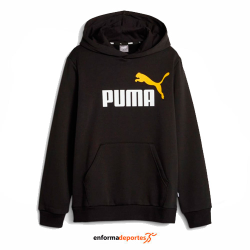 Sudadera junior PUMA ESS+ COL BIG LOGO, de corte holgado, con capucha forrada en punto de algodón con cordón para un ajuste regulable, bolsillos tipo canguro y puños de canalé.
