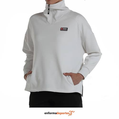 Sudadera mujer +8000 NAT, confeccionada en tejio princial en interior poliéster con viscosa de interior cálido, con cuello con media cremallera, con bolsillos laterales, puños elásticos y bajo suelto.