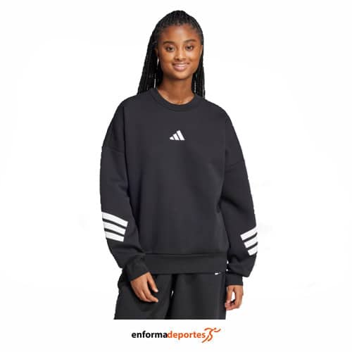 Sudadera mujer ADIDAS FUTURE ICONS 3S, de corte holgado, confeccionada en tejido poliéster y algodón, con cuello redondo, manga larga, con puños y dobladillo acanalado.