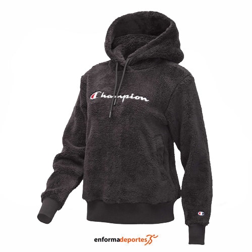 Sudadera mujer CHAMPION, confeccionada en algodón y poliéster felpado que ofrece una máxima comodidad durante el día a día, con capucha ajustable, bolsillos laterales, puños elásticos y el logotipo de la marca bordado.