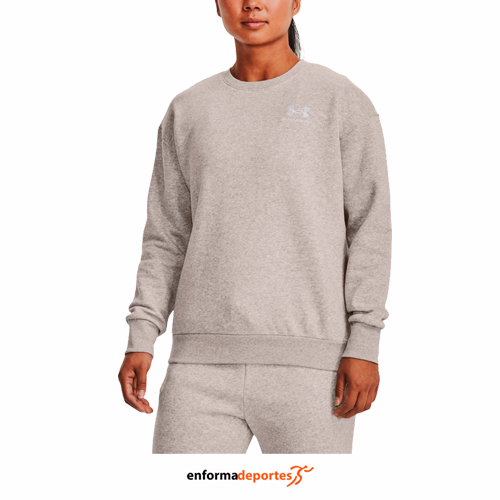 Sudadera mujer UNDER ARMOUR ESSENTIAL FLEECE CREW, manga larga y cuello redondo, confeccionado en tejido Fleece de mezcla de algodón ultrasuave y con interior cepillado para una mayor calidez, de corte holgado y cuello, puños y bajo acanalados.