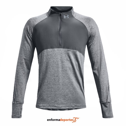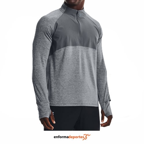 Sudadera hombre UNDER ARMOIUR QUALIFIER RUN 2.0 HZ, confeccionada en tela de punto suave antibolitas tiene un acabado limpio y sin enganches, con superposición tejida resistente al agua en el pecho brinda mayor durabilidad, material elástico en 4 direcciones se mueve mejor en todas las direcciones que absorbe el sudor y se seca muy rápido, con tecnología antiolor evita el crecimiento de microbios que causan olor, orificios para los pulgares incorporados ayudan a mantener las mangas en su lugar, con media cremallera que facilita la colocación de capas y mangas raglán.