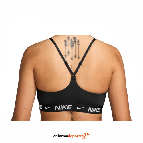 Top mujer NIKE INDY LIGHT SUPPPORT PAD, prenda con ajuste perfecto gracias a los tirantes finos que se ajustan fácilmente en la espalda, con almohadillas técnicas se deslizan desde la parte inferior y permanecen en su sitio, perfiles invisibles, confeccionado en tejido con tecnología Nike Dri-FIT que evacua el sudor para una evaporación más rápida, se mantiene seco y cómodo, con suave banda de jacquard en el pecho para un ajuste seguro sin pellizcos ni arrugas.