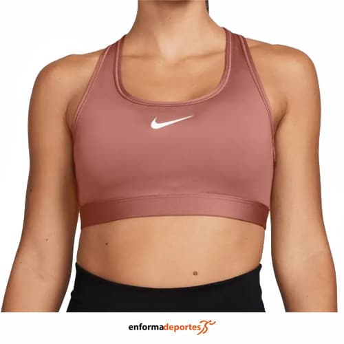 Top mujer NIKE SWSH MED SPT, de soporte medio, ajuste adherente, forro mesh, confeccionado en tejido poliéster con tecnología DRI-FIT, con cuello redondo con cinta interna, acolchado cosido y no extraíble, banda elástica debajo del seno para un fit suave y espalda en forma de X para mayor comodidad y libertad de movimientos.