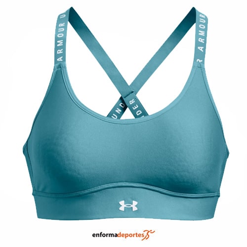 TOP MUJER UNDER ARMOUR INFINITY MID COVERED | GLACIER BLUE/WHITE