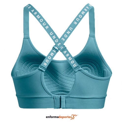 Top mujer UNDER ARMOUR INFINITY MID COVERED, binda soporte estratégico, con acolchado de una pieza inyectado de PU moldeado para brindar el máximo soporte, comodidad y cobertura, con paneles de malla para mayor transpirabilidad, banda suave que absorbe el sudor tiene un cierre fácil de gancho y ojo para poner y quitar fácilmente, tirantes ajustables con detalle de marca denominativa para un ajuste personalizado, confeccionado en tejido HeatGear® brinda una sensación superior al contacto con la piel y material que absorbe el sudor y se seca muy rápido.
