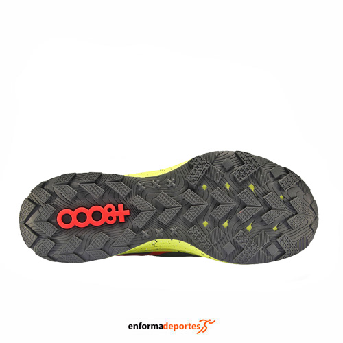 Zapatilla hombre +8000 TIGOR, destaca su suela, que proporciona una gran amortiguación y que gracias a su diseño taqueado, nos aporta una tracción y un agarre óptimo. El corte es una combinación de nylon y lycra complementados con termosellados que evitan costuras innecesarias. La construcción del talón y el empeine tipo “calcetín” ayuda al perfecto ajuste de la zapatilla.