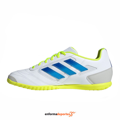 zapatilla hombre ADIDAS SUPER SALA 2, de horma clásica, con parte superior confeccionada en material sintético que te protege de golpes y rasguños, mientras que la malla transpirable mantiene tus pies frescos y cómodos, con cierre con cordones, y suela de goma que no deja marcas, con dibujo de tracción para movimientos rápidos sobre pista cubierta indoor.