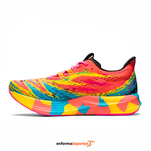 Zapatilla hombre ASICS NOOSA TRI™ 15, cómoda e ideal para disfrutar de una carrera suave, con tecnología FLYTEFOAM™, ligera y que proporciona suficiente comodidad sin aportar peso a la zapatilla, con puntera más elevada que aumenta la velocidad durante la carrera.