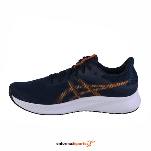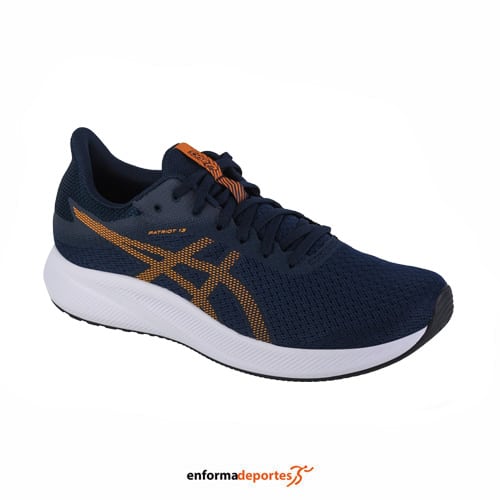 Zapatilla hombre ASICS PATRIOT 13 ideal para los que se inician en la actividad y buscan una zapatilla con las calidades de una primera marca, con corte en malla transpirable termosellada sin costuras, ligera y resistente, con refuerzos en material sintético, cuello está ligeramente acolchado favoreciendo un cómodo ajuste, con suela está fabricada con AHAR+, compuesto de alta durabilidad, con ranuras transversales de la suela promueven una pisada más flexible.