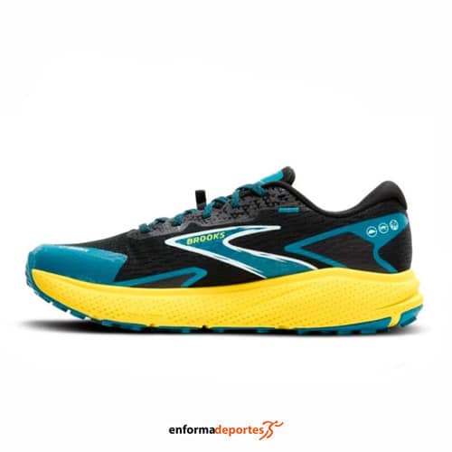Zapatilla hombre BROOKS DIVIDE 5, fabricadas en su parte superior con malla transpirable y puntera TPU para mayor protección, gracias a su tracción con amortiguación DNA LOFT v2 es un 10% más ligera que antes y ofrece una conducción suave y fluida de la carretera al sendero, mientras que los tacos agresivos proporcionan agarre todoterreno, gran ajuste y con suela de goma TrailTack Green está fabricada con un 25% de contenido reciclado y ofrece una tracción de alto rendimiento tanto en terrenos secos como mojados. Drop: 8mm